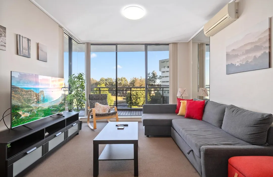 The apartment lies approximately 25 minutes on foot from ANZ Stadium.